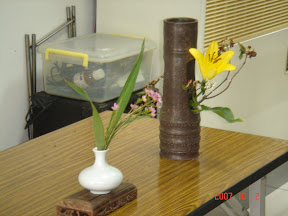 再來就是擺花了.擺花是簡單,但是花的上面還要上一層薄薄的紙張,這可不是我們這等的三脚貓功夫可以做的來,只好老師親自上場了.